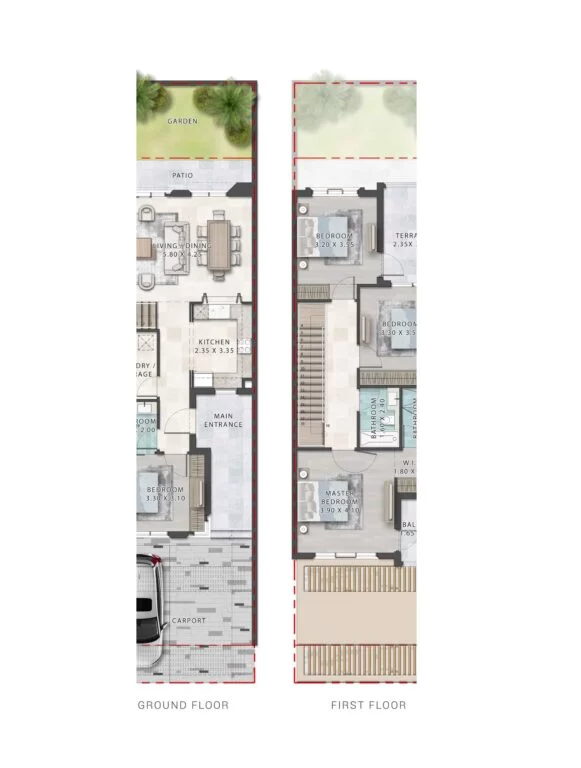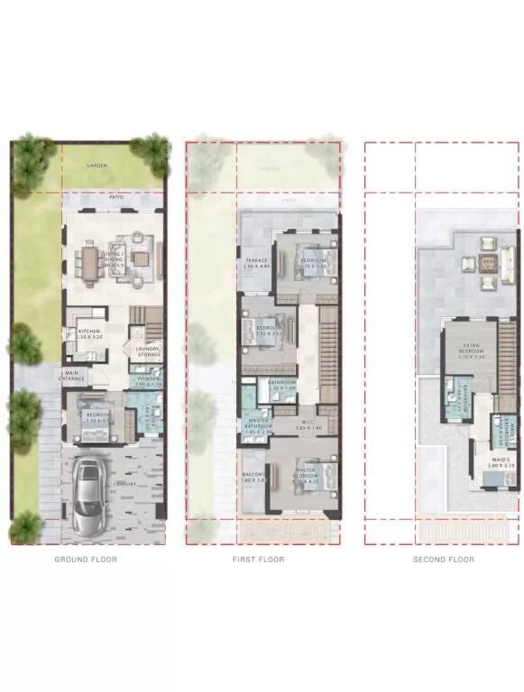 The 4-bedroom townhomes have spacious terraces, a private