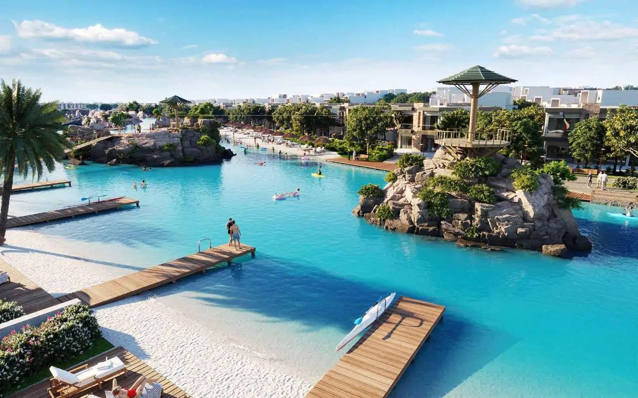They will be located on the shore of an artificial lagoon with